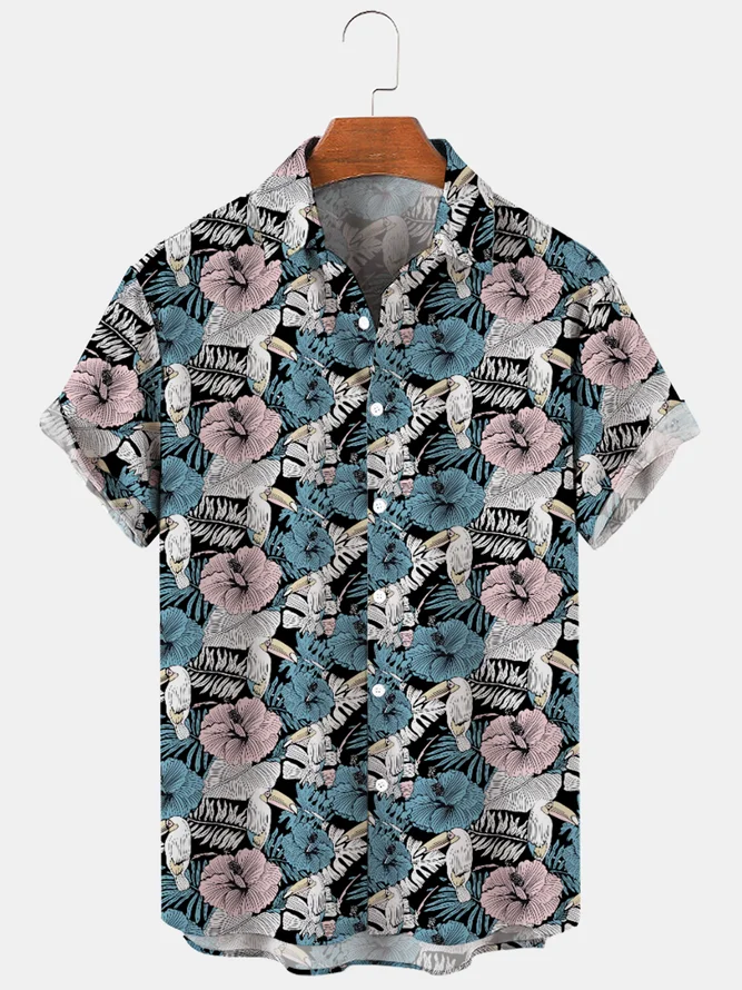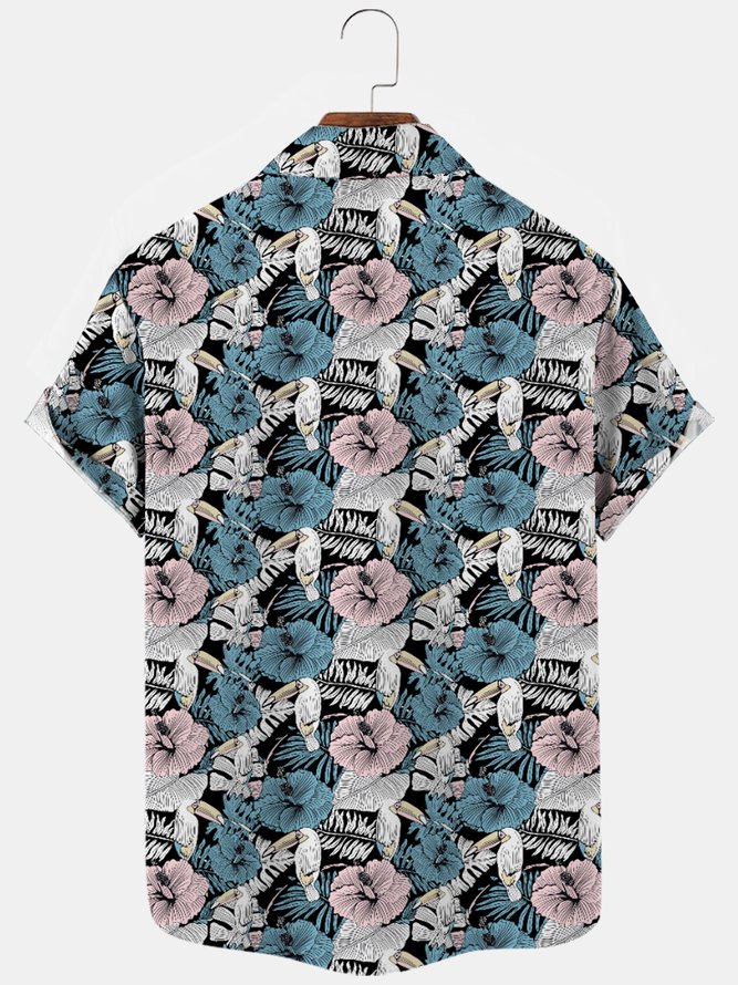 Casual Floral Lapel Cotton Blends Short Sleeve Shirt