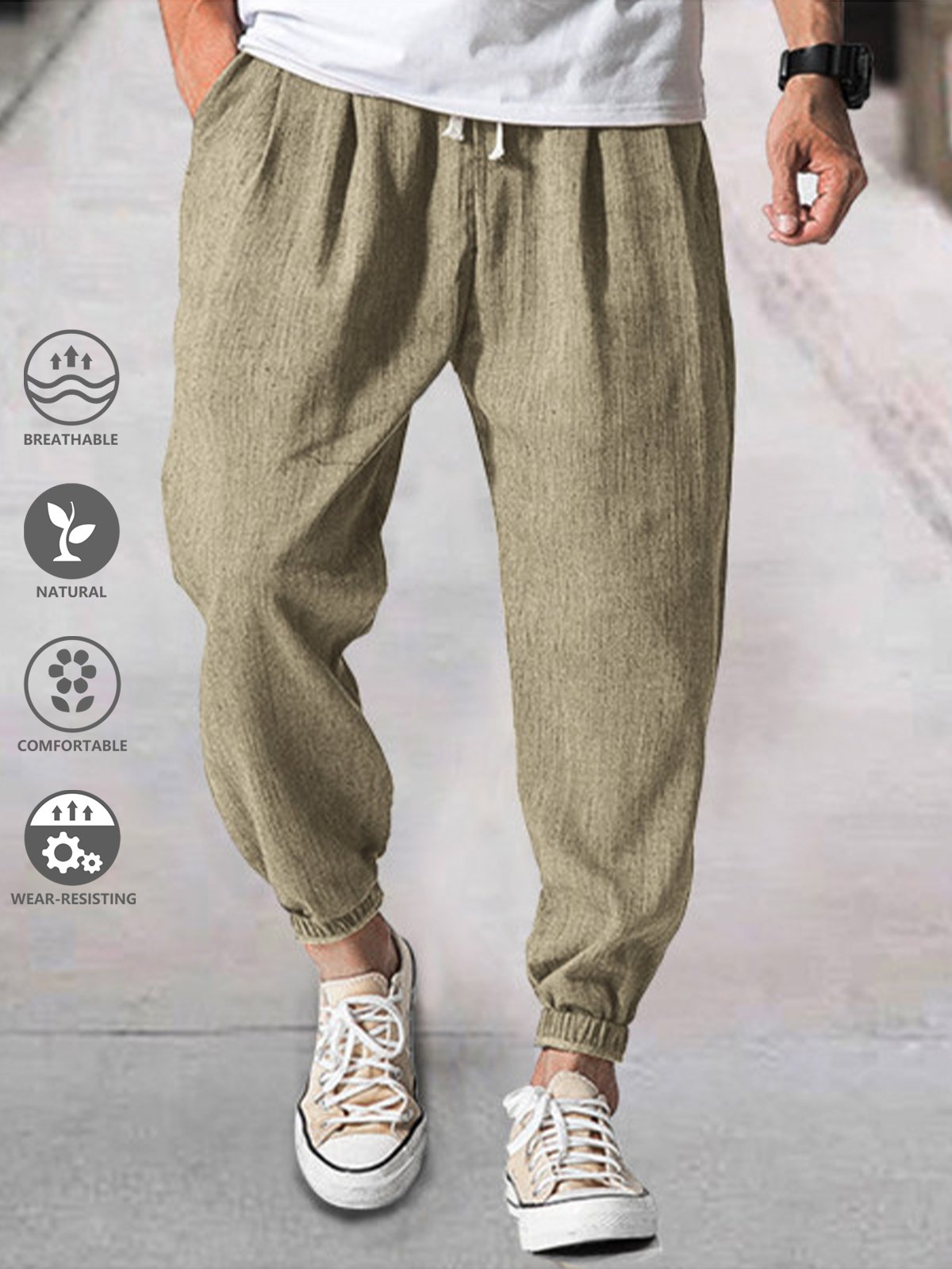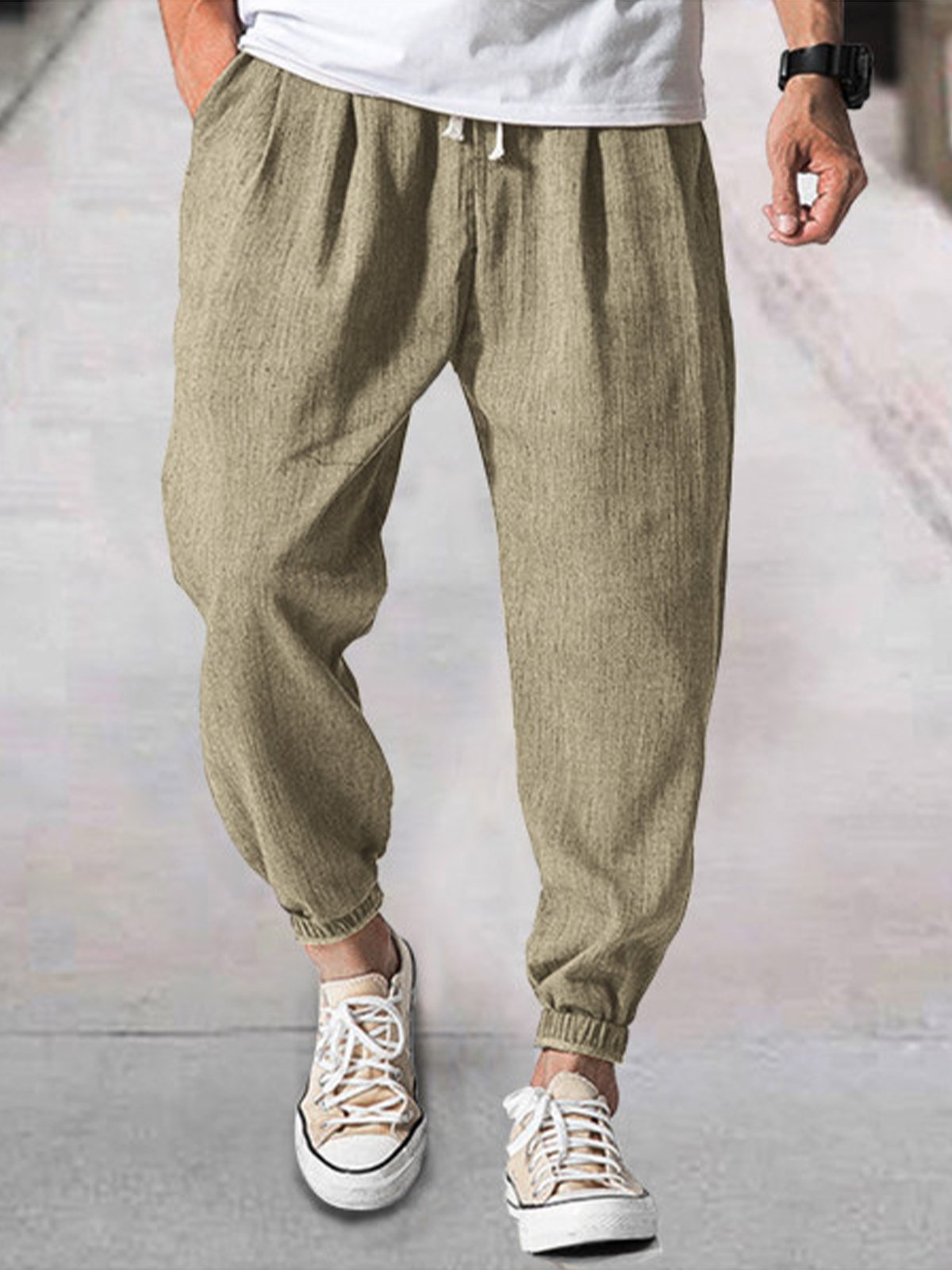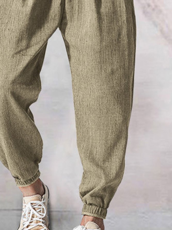Cotton and Linen Plain Hawaiian Casual Trousers