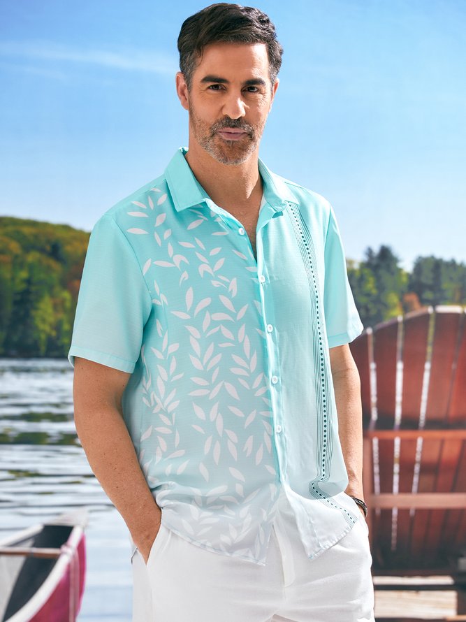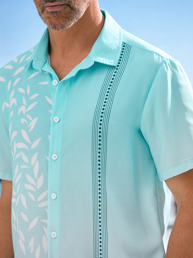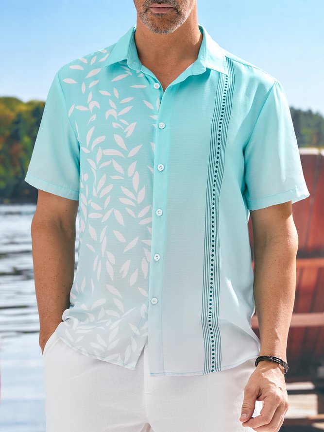 Hawaiian Floral Gradient Short Sleeve Casual Bowling Shirt