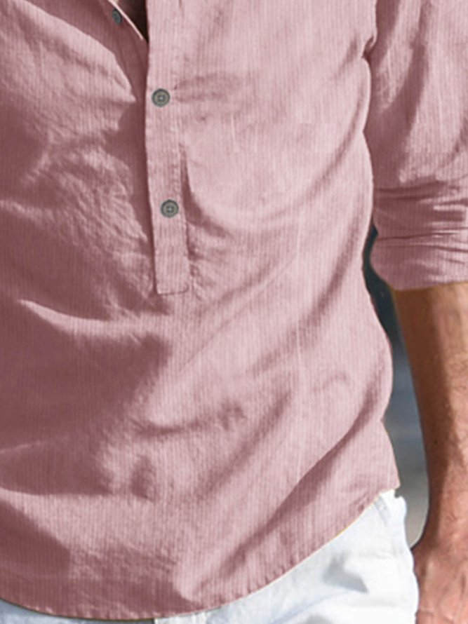 Men's Cotton Linen Plain Color Casual Long Sleeve Shirt