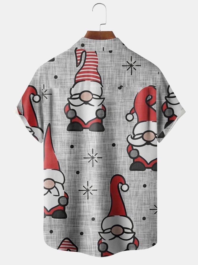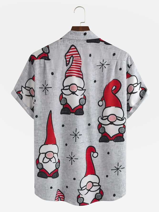 Men's Santa Print Casual Breathable Short Sleeve Shirt