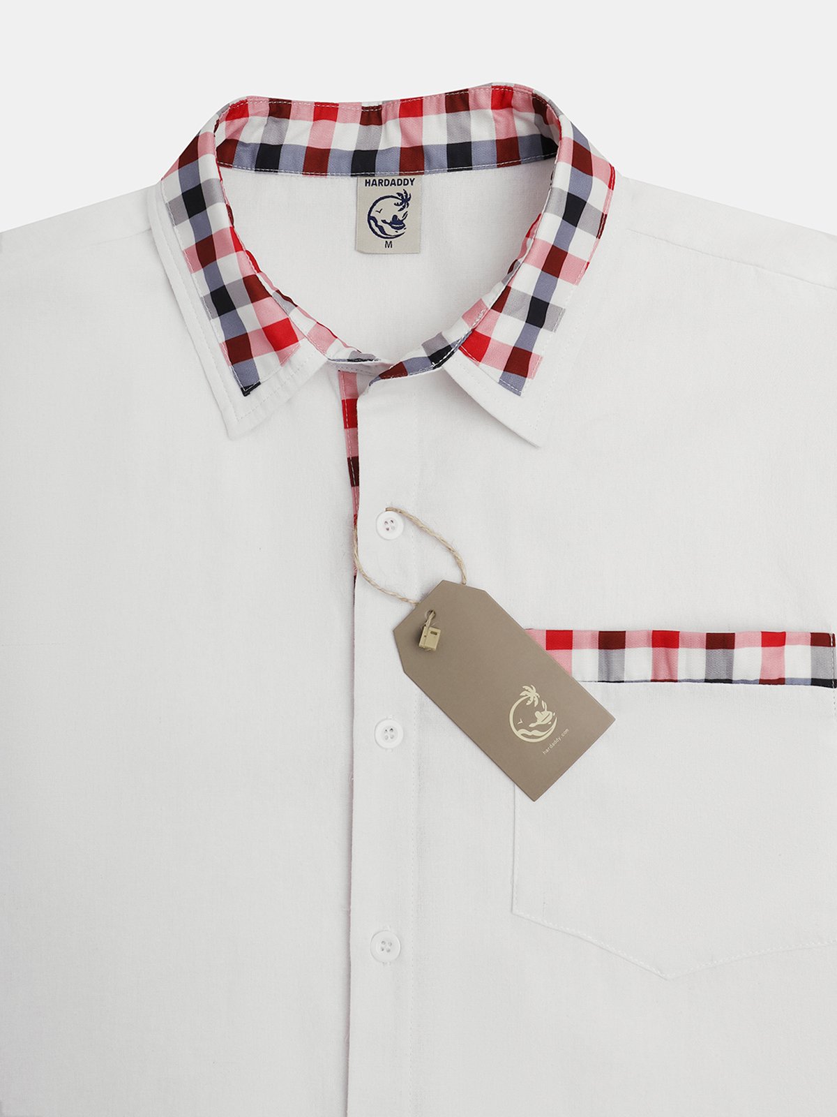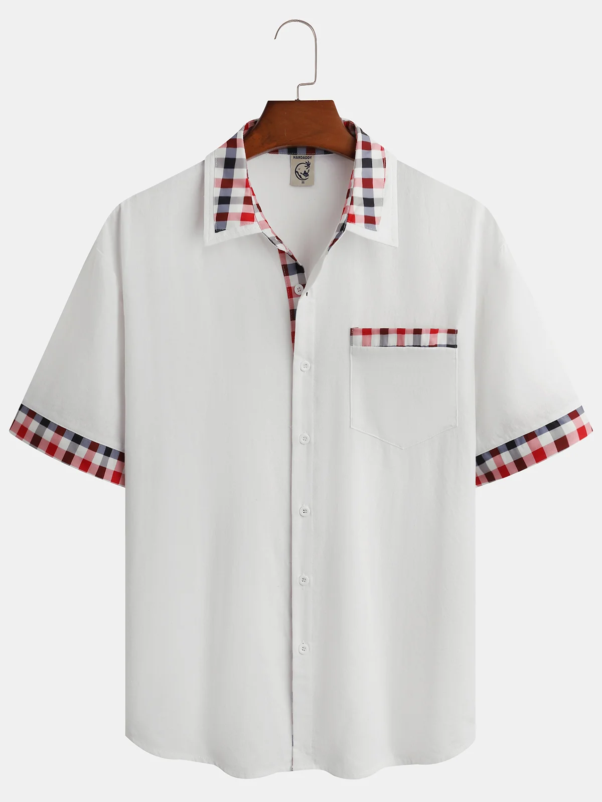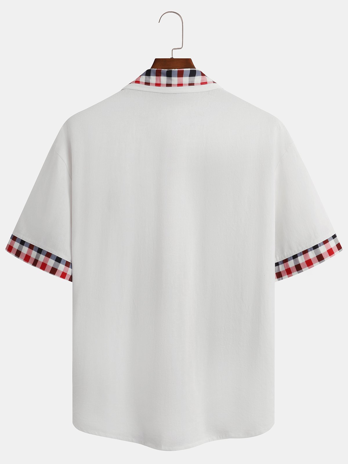 Contrast Plaid Panel Short Sleeve Casual Shirt